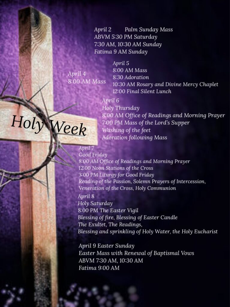 2) ABVM daily Mass chapel or 3) Our Lady of Fatima Mission