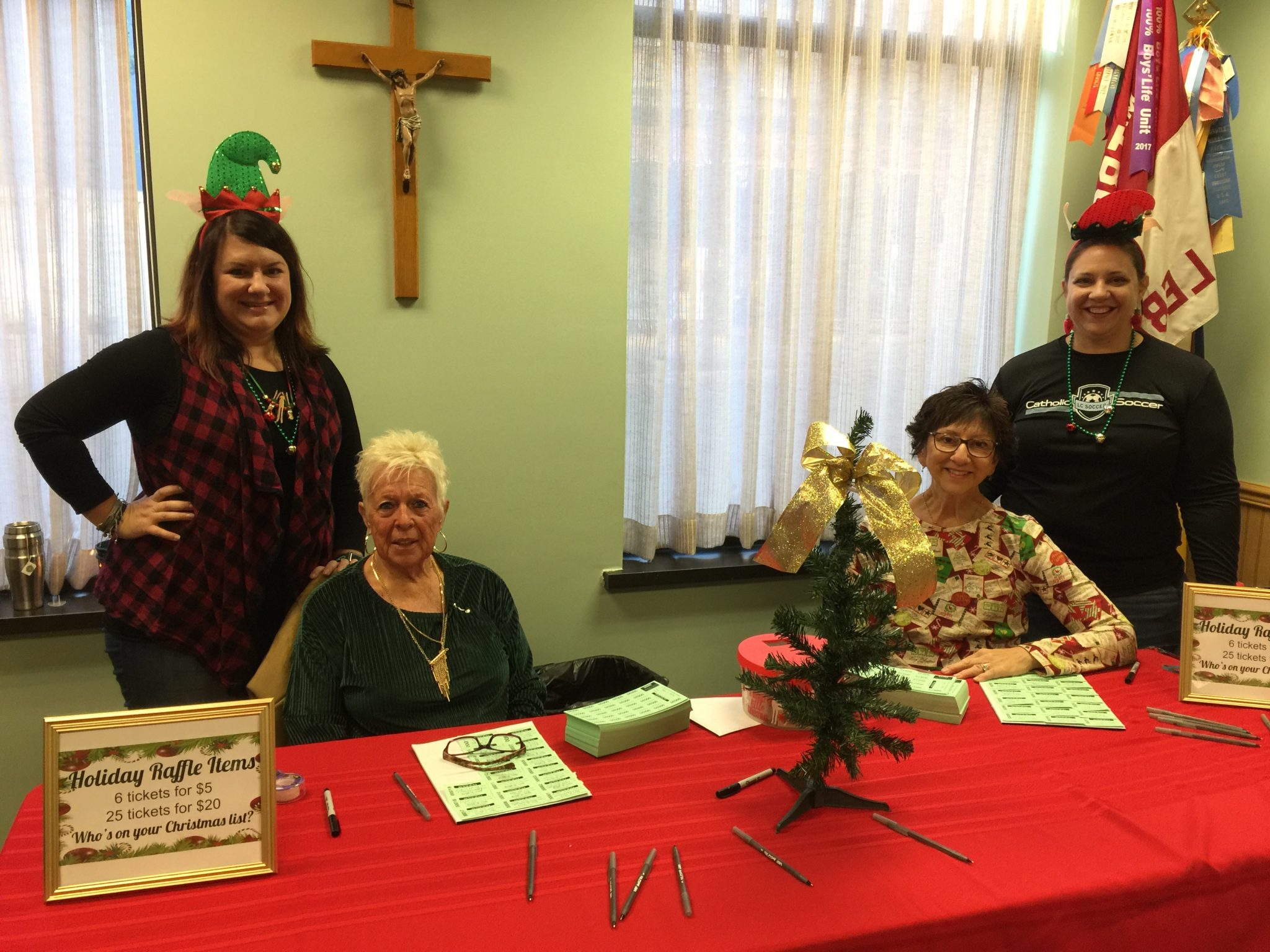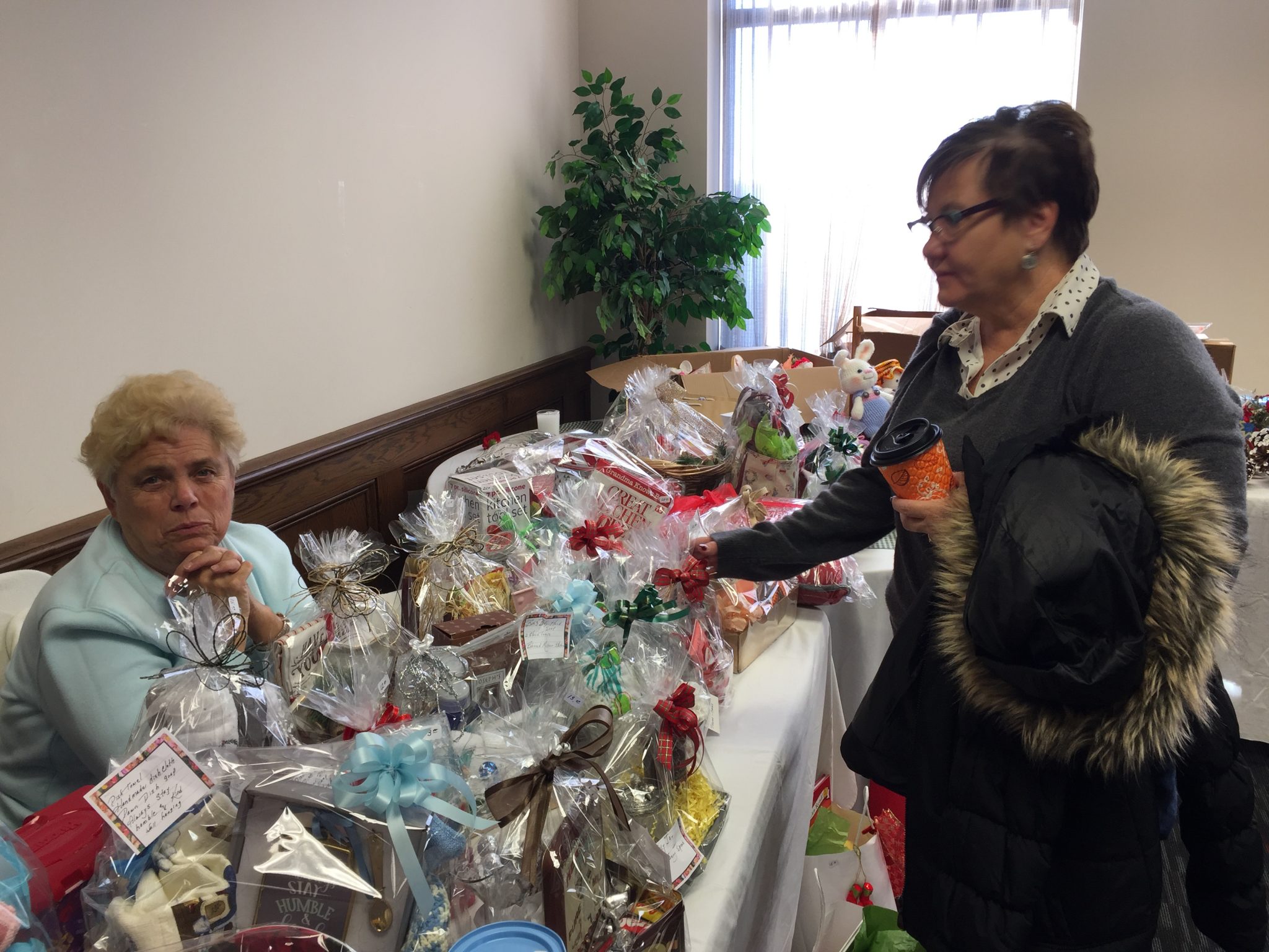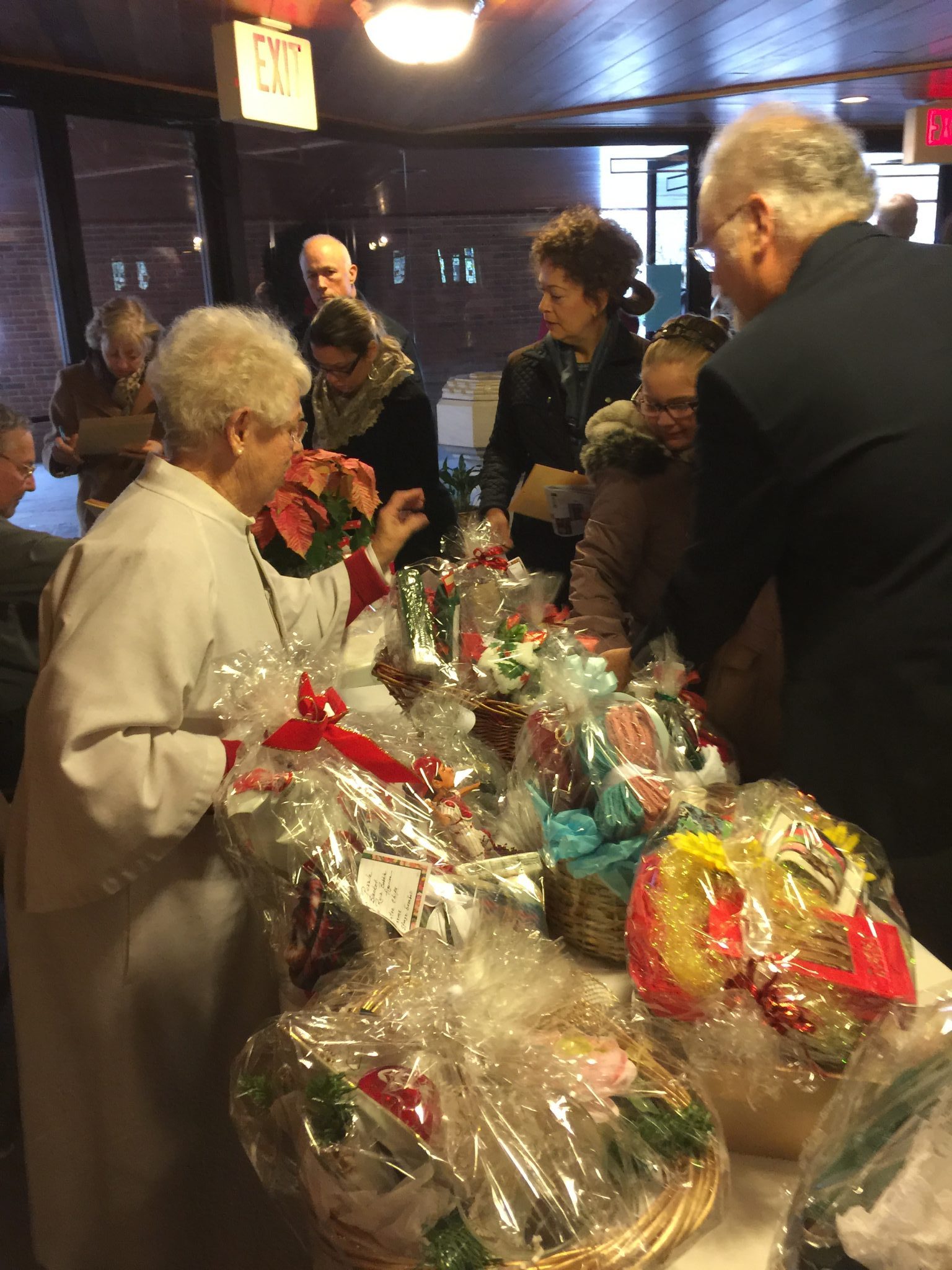 Katie and Emily created beautiful gift baskets with the donations they collected over the year from generous parishioners. Remember the Christmas in July tree ?