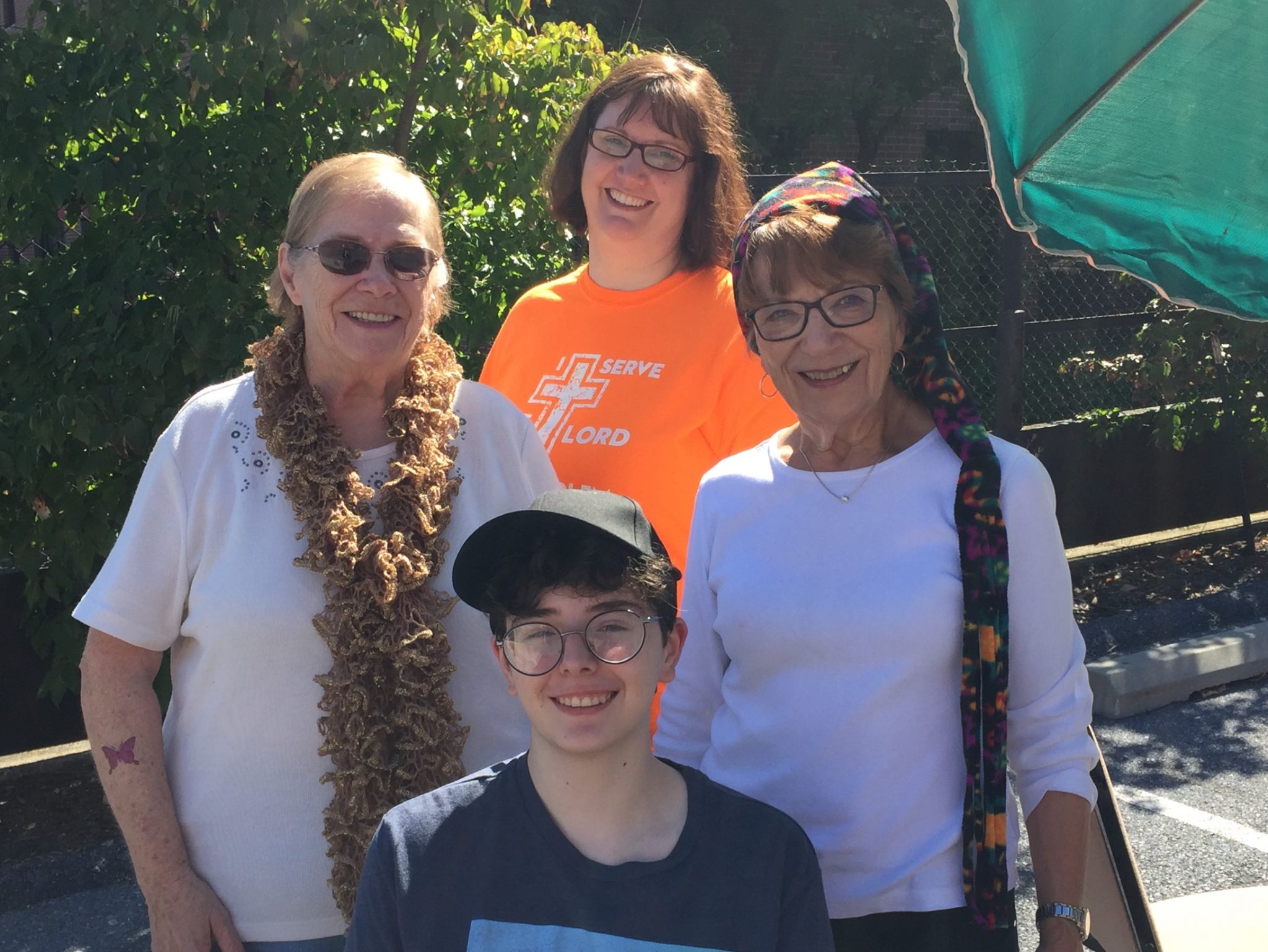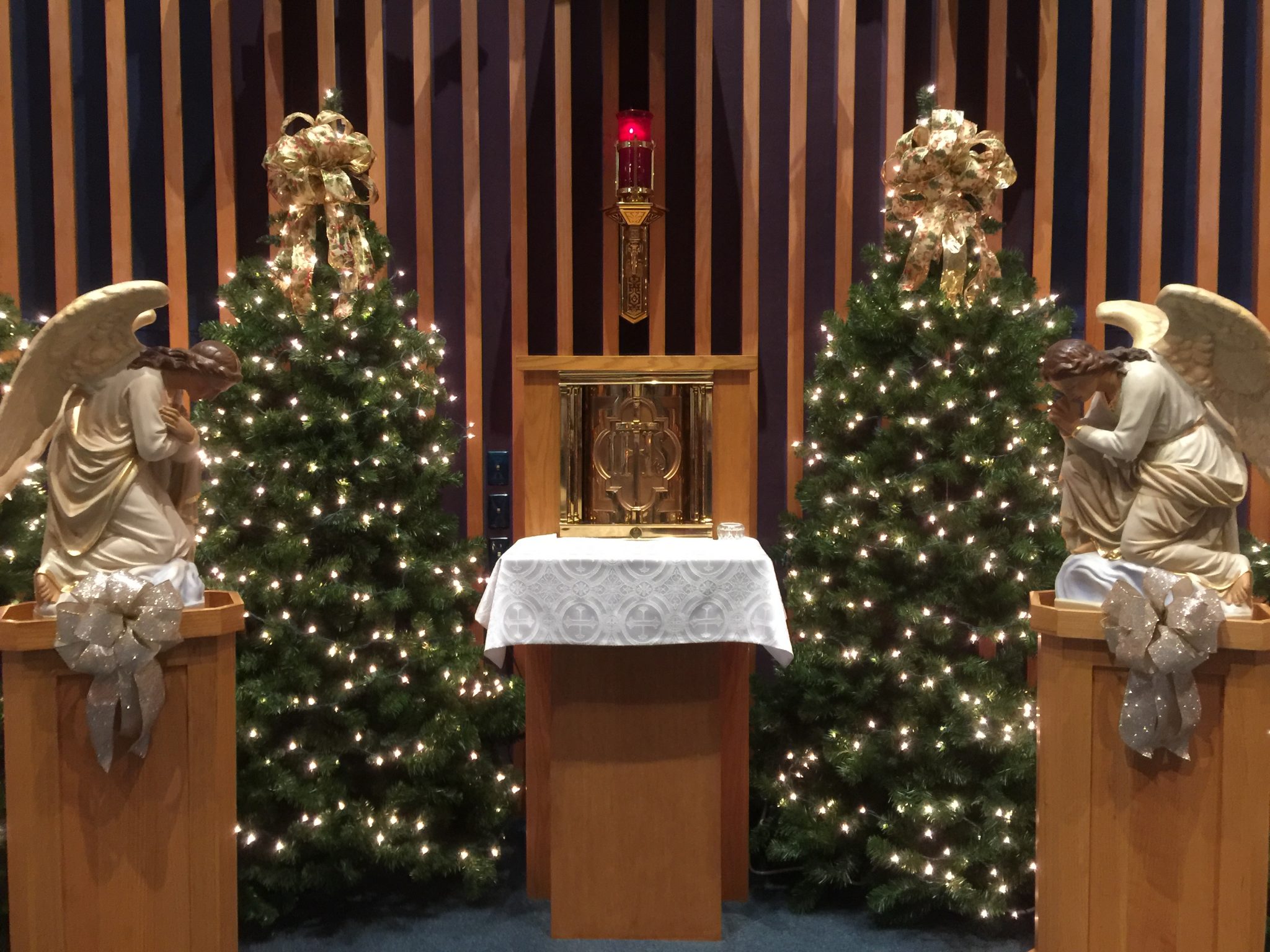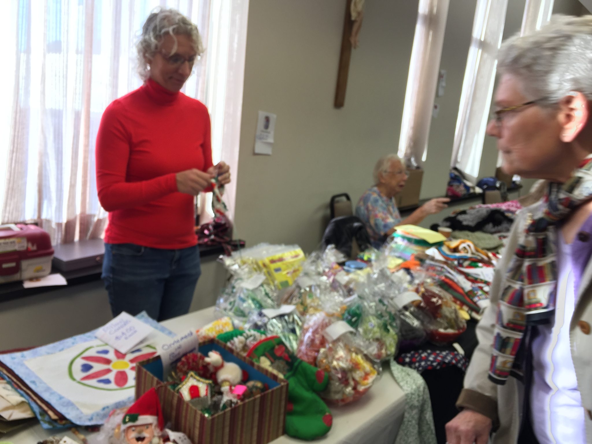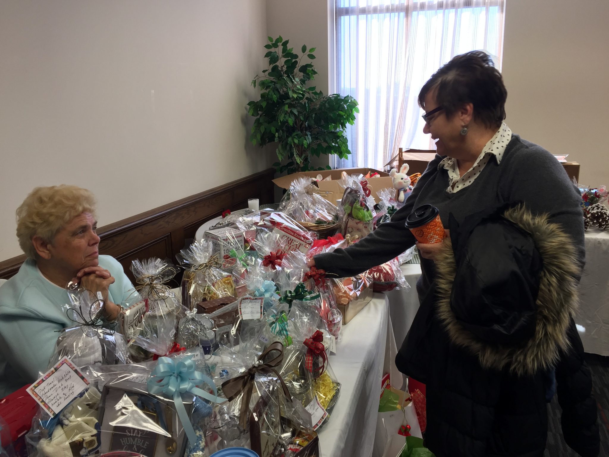 Katie and Emily created beautiful gift baskets with the donations they collected over the year from generous parishioners. Remember the Christmas in July tree ?