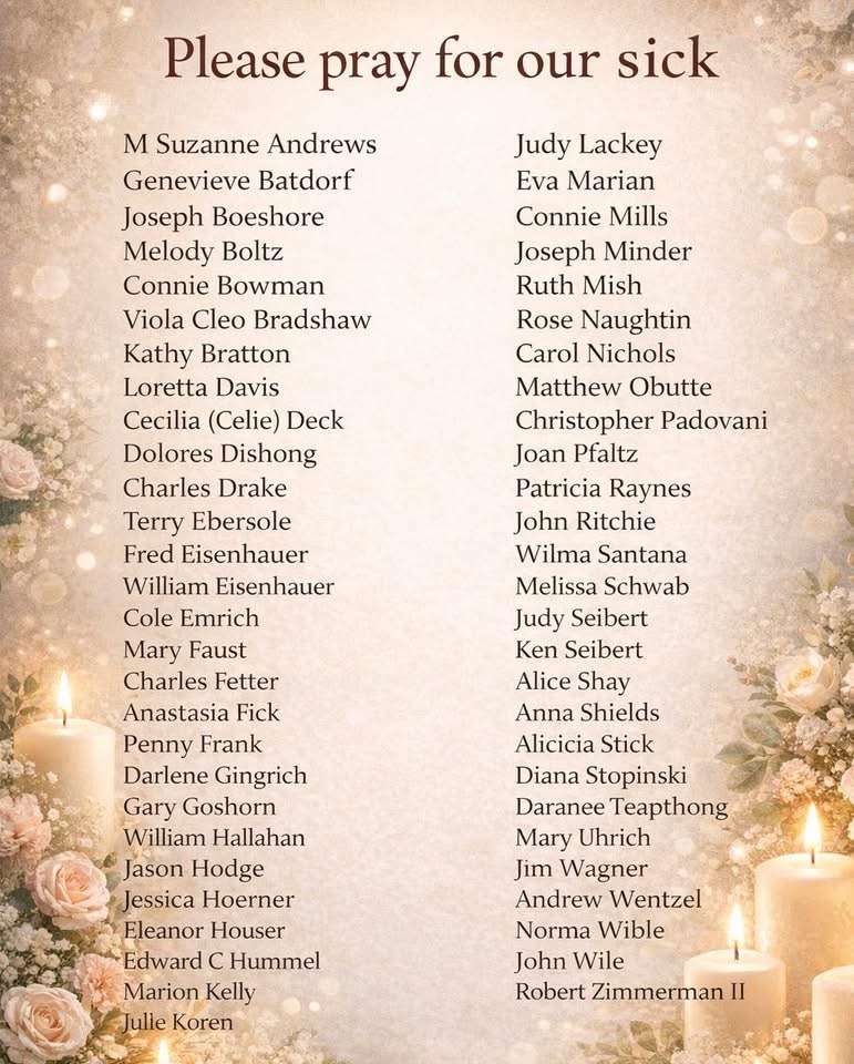 To add or remove a name from this list, please call Diane in the parish office at 717-272-5674. Thank you and God bless you.